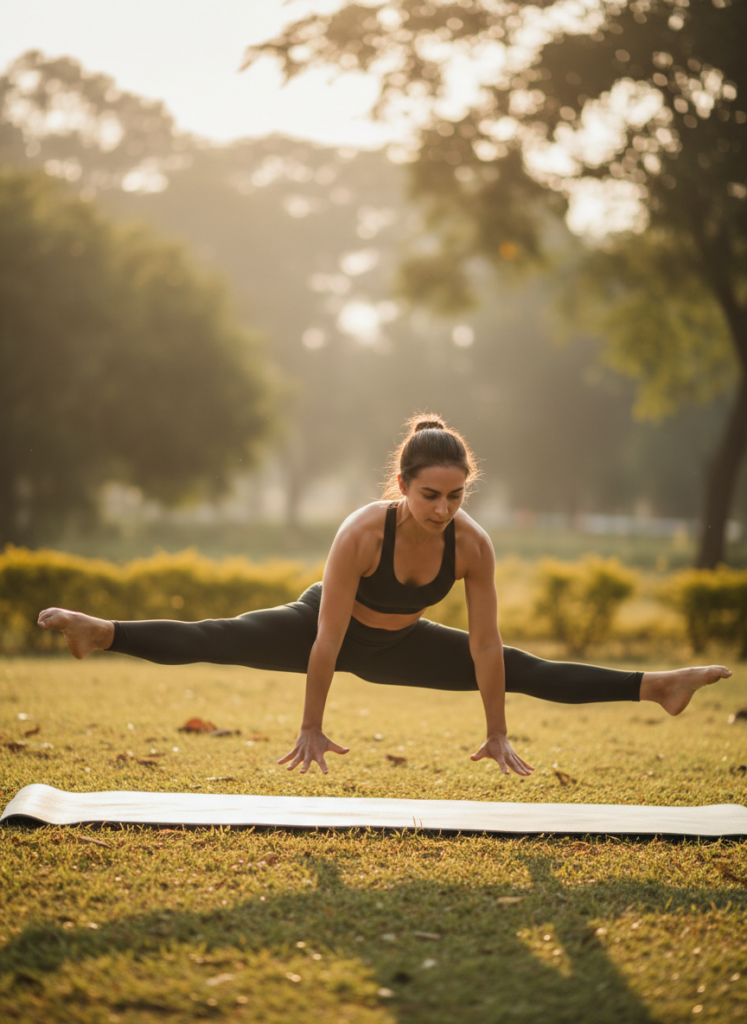 Eka Pada Koundinyasana II, often referred to as the Flying Split, is a powerful advanced arm balance that embodies the perfect marriage of strength, flexibility, and focus. This pose is not just about physical prowess; it requires a deep understanding of your body’s center of gravity and the ability to coordinate multiple muscle groups simultaneously.